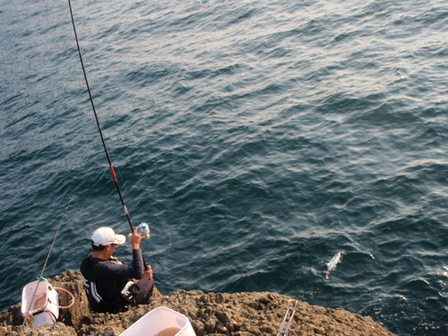 午前中もまずは防波堤からアタリがあって
